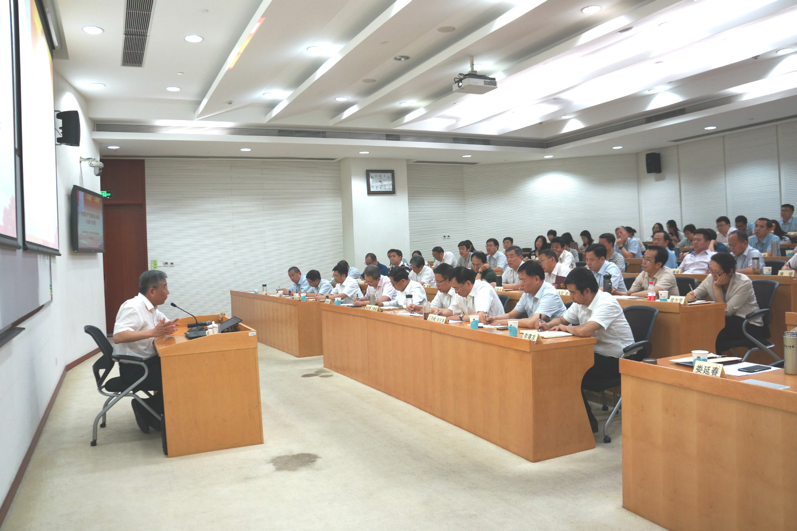 為扎實(shí)開(kāi)展“不忘初心、牢記使命”主題教育,貫徹落實(shí)國(guó)資委黨委主題教育各項(xiàng)工作要求,6月10日至6月28日,集團(tuán)黨委在中央黨校(國(guó)家行政學(xué)院)舉辦了“不忘初心、牢記使命”主題教育領(lǐng)導(dǎo)干部專(zhuān)題培訓(xùn)班。培訓(xùn)班分兩期,每期5天,集團(tuán)領(lǐng)導(dǎo)班子成員、二級(jí)單位班子成員、董監(jiān)高人員、黨群人事部門(mén)負(fù)責(zé)人以及總部中層以上領(lǐng)導(dǎo)干部共計(jì)140余人參加了培訓(xùn)。黨委書(shū)記、董事長(zhǎng)、總經(jīng)理王德成主持了開(kāi)班式。