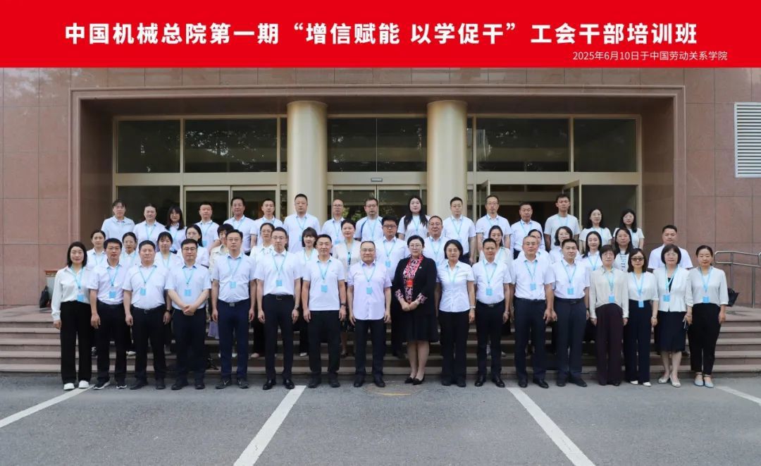為深入學習貫徹習近平總書記在慶祝中華全國總工會成立100周年暨全國勞動模范和先進工作者表彰大會上的重要講話精神,準確把握新時代工會工作的新任務、新要求,切實加強集團各級工會干部政治素養和業務能力,提升工會工作規范化、專業化水平,6月9-13日,中國機械總院集團工會首期“增信賦能 以學促干”工會干部培訓班在中國勞動關系學院成功舉辦。中國勞動關系學院黨委常委,工會干部培訓學院黨總支書記戴筱筱出席開班儀式并致辭。